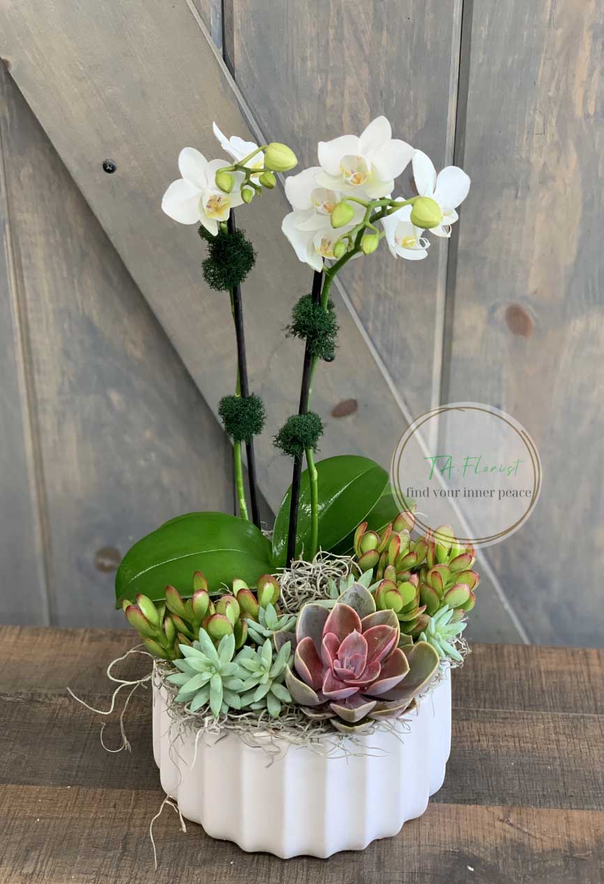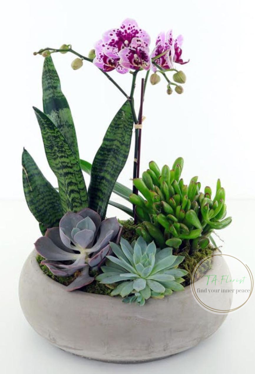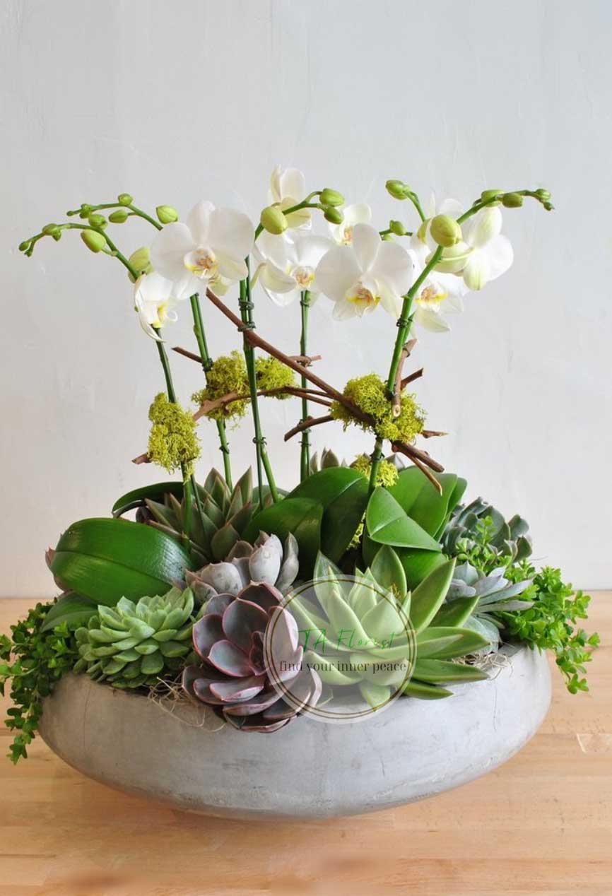 Mỗi tiểu cảnh lan sen đá tại TAflorist là bản giao hưởng xa hoa của những tặng phẩm thanh lịch nhất của thiên nhiên. Sự sắp xếp này là sự tôn vinh tinh tế của nghệ thuật và sự tĩnh lặng, một tác phẩm tuyệt đẹp mang bản chất của một khu vườn thanh bình vào bất kỳ ngôi nhà hay văn phòng nào.