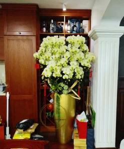 - Đặc điểm nổi bật: Bình lan hồ điệp lớn, hoa tươi mới, thiết kế đẳng cấp, phù hợp không gian sang trọng.