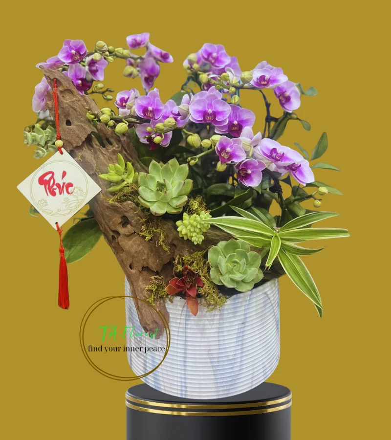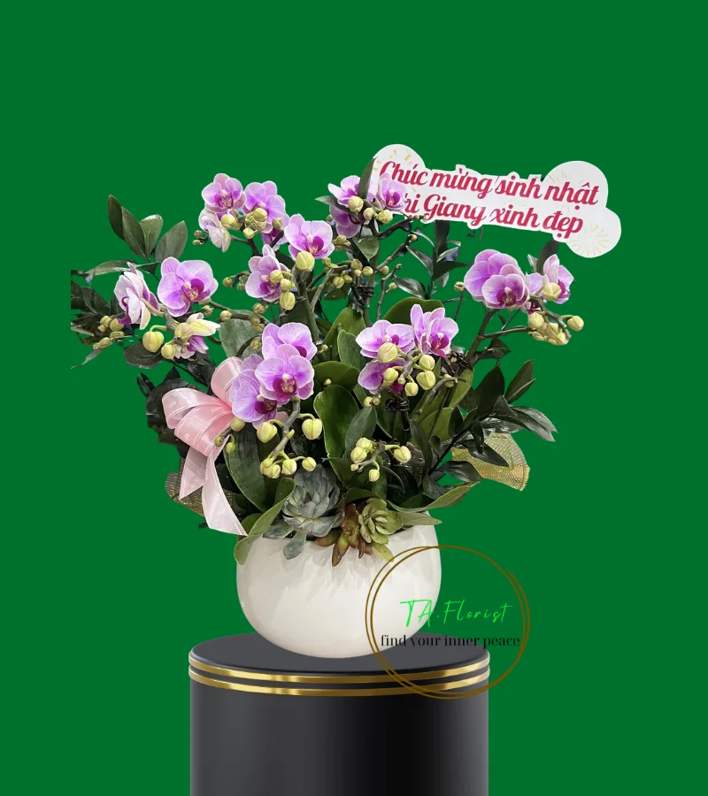 - Các hình ảnh thể hiện kiểu dáng gần giống và một số loại lan có thể khác nhau, tùy thuộc vào tình trạng sẵn có theo mùa trong năm. TAflorist cung cấp những cây lan tươi mới nhất để bạn thưởng thức, do đó mỗi cách sắp xếp chậu lan đều đặc biệt và độc đáo.