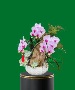- Thiết kế sang trọng: Ghép nghệ thuật với chậu sứ cao cấp, phụ kiện cây phong thủy và nơ lụa, tạo điểm nhấn hiện đại, chuyên nghiệp. Phong cách thiết kế đa dạng: Trầm mặc, Sang trọng, Hiện đại và Cổ điển… tùy theo cá tính của sếp bạn