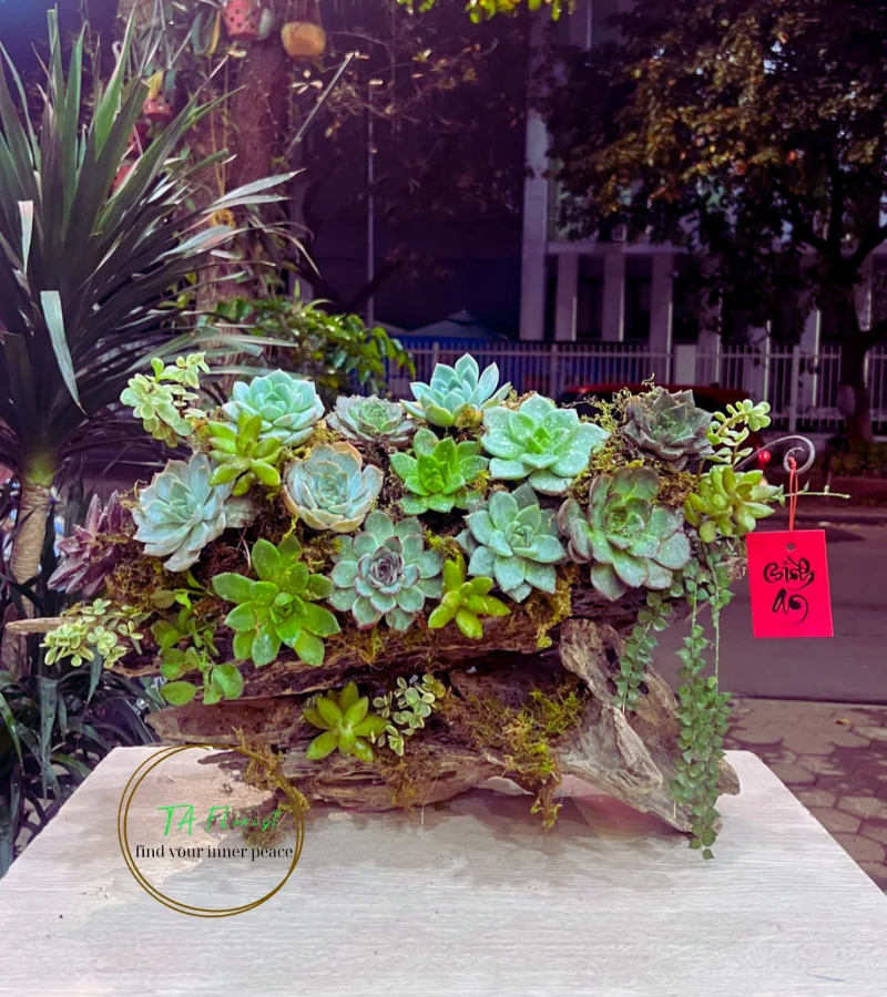 Mẫu sen đá ghép lũa để bàn nhỏ gọn TAF058